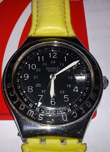 Trata-se de um Swatch da linha Irony Big Standard da coleção "2000 SpringSummer" Cód.: YGS417P Modelo: HAPPY JOE NOIRE